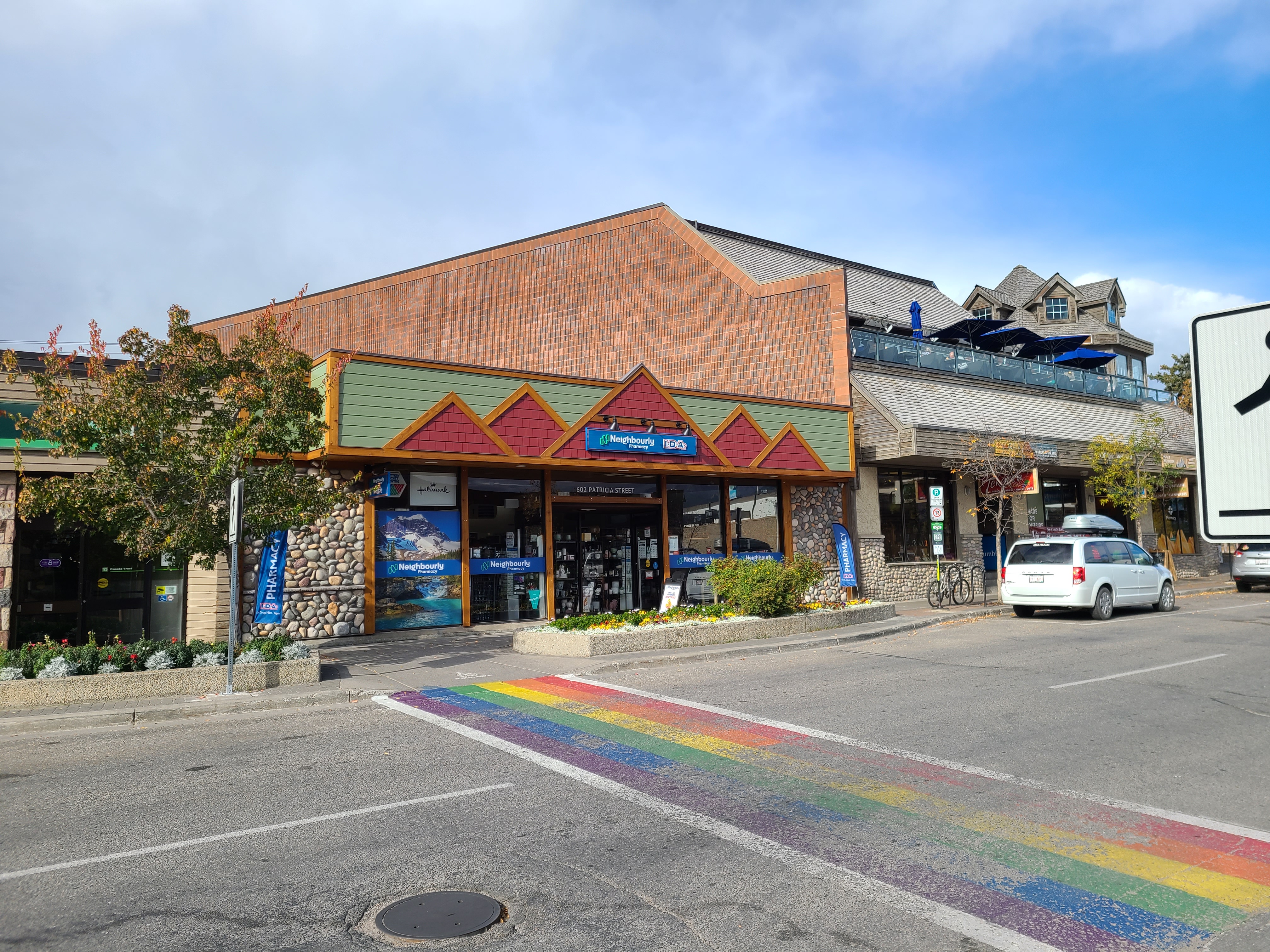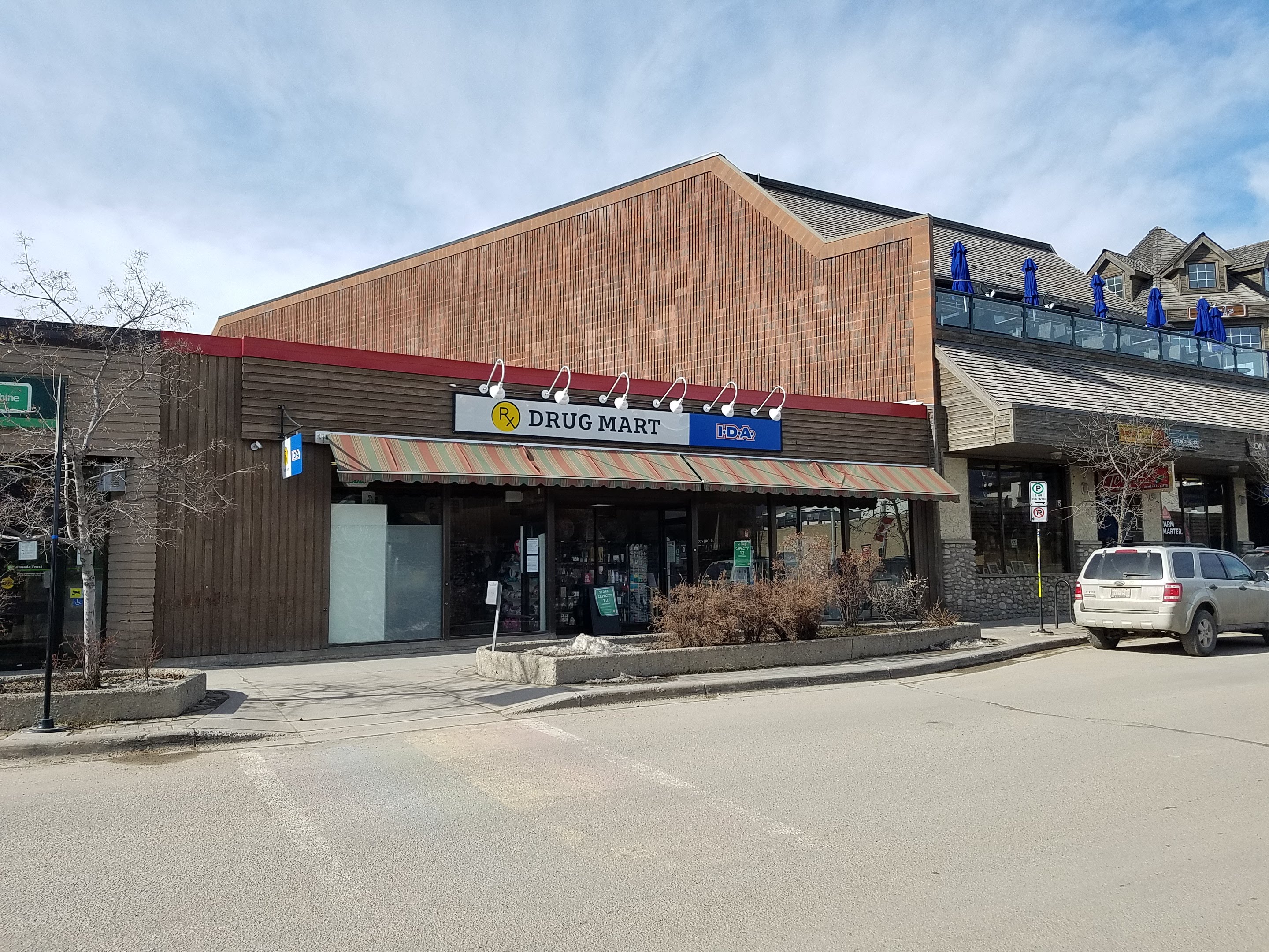 Jasper’s IDA pharmacy building had previously been as-constructed since the early 1970s. In the interests of providing shoppers with a protected canopy, and providing a more mountain-esque feel, the owner of the building wished to renovate the front facade.