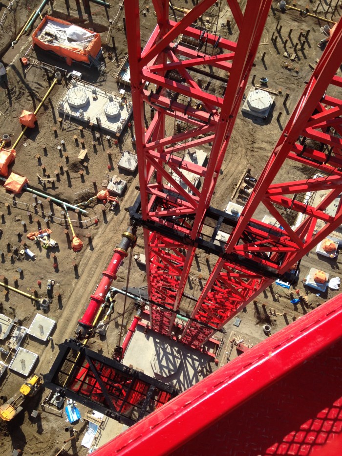 The slender structure was unguyed – a unique cost-savings that allowed construction activity to take place around the structure during its assembly and operation. Where guy lines would have restricted overhead activity, this structure posed no such limitations. The lift system solution reflected a cost savings through reduced ground work, equipment costs, and a minimal footprint.